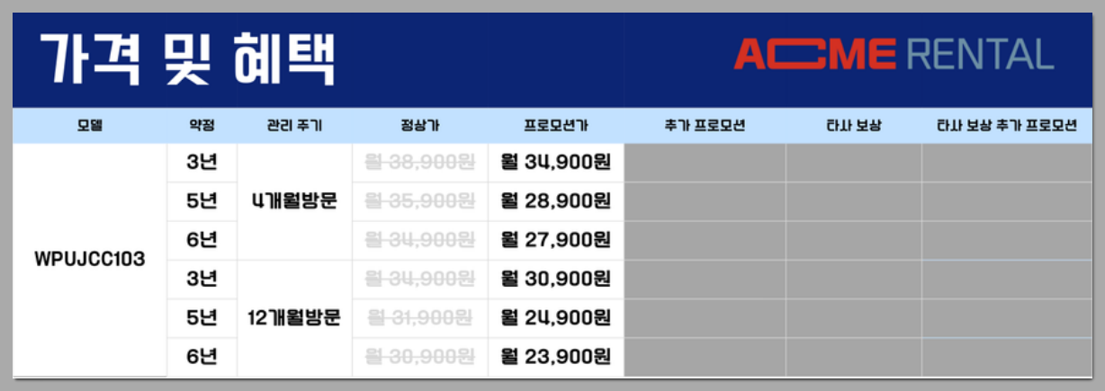 - 대표요금제 기준이며 요금제에 따라 총 렌탈비용이 다를 수 있음