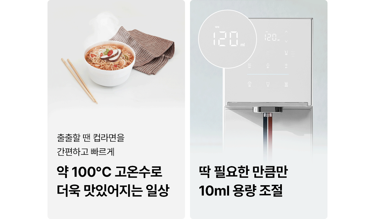 ⑧ 10ml 단위 맞춤 출수 & 정량선택 (120ml / 250ml / 550ml / 연속 1,000ml)
