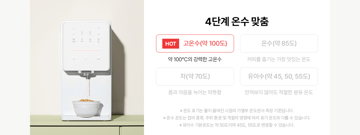 * 편의성 강화 : 약 100ºC 고온수 기능 추가