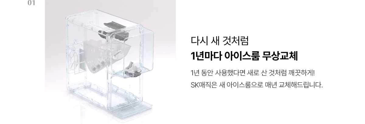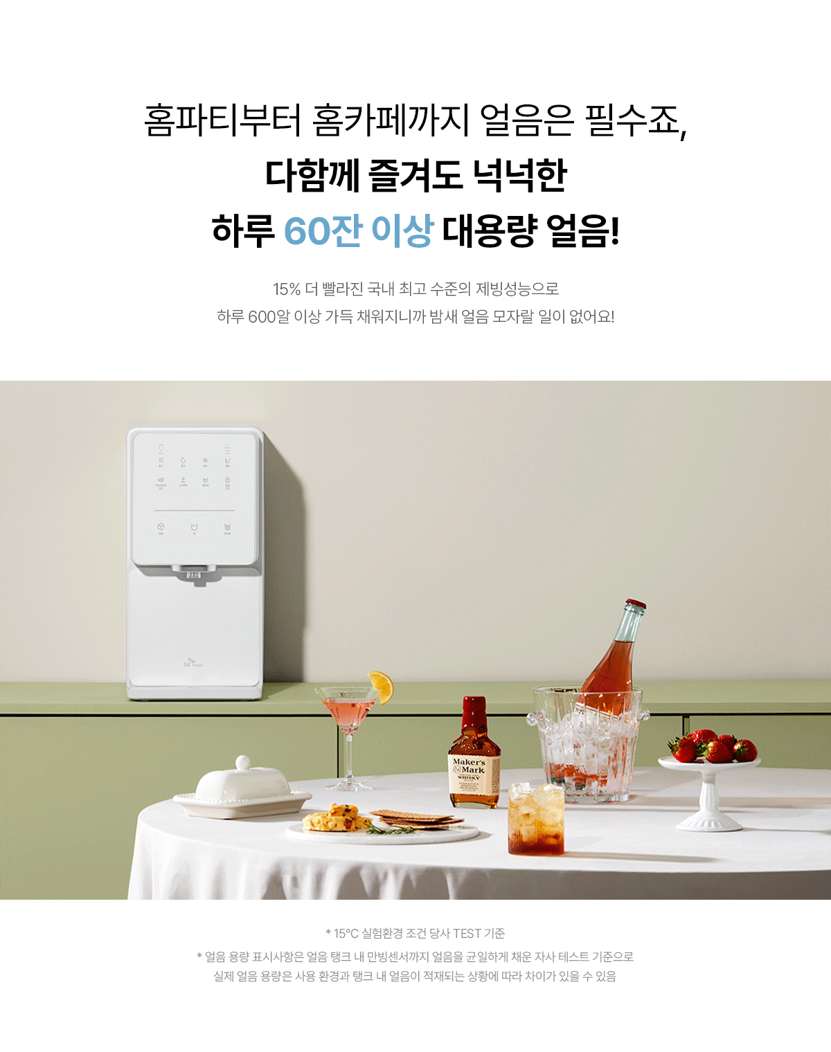 * 위생성 강화 : All직수, 스테인리스 직수관 + 4중 안심케어(아이스룸 UV케어, 코크 UV케어, 직수관 전기분해수 케어, 유로순환케어)