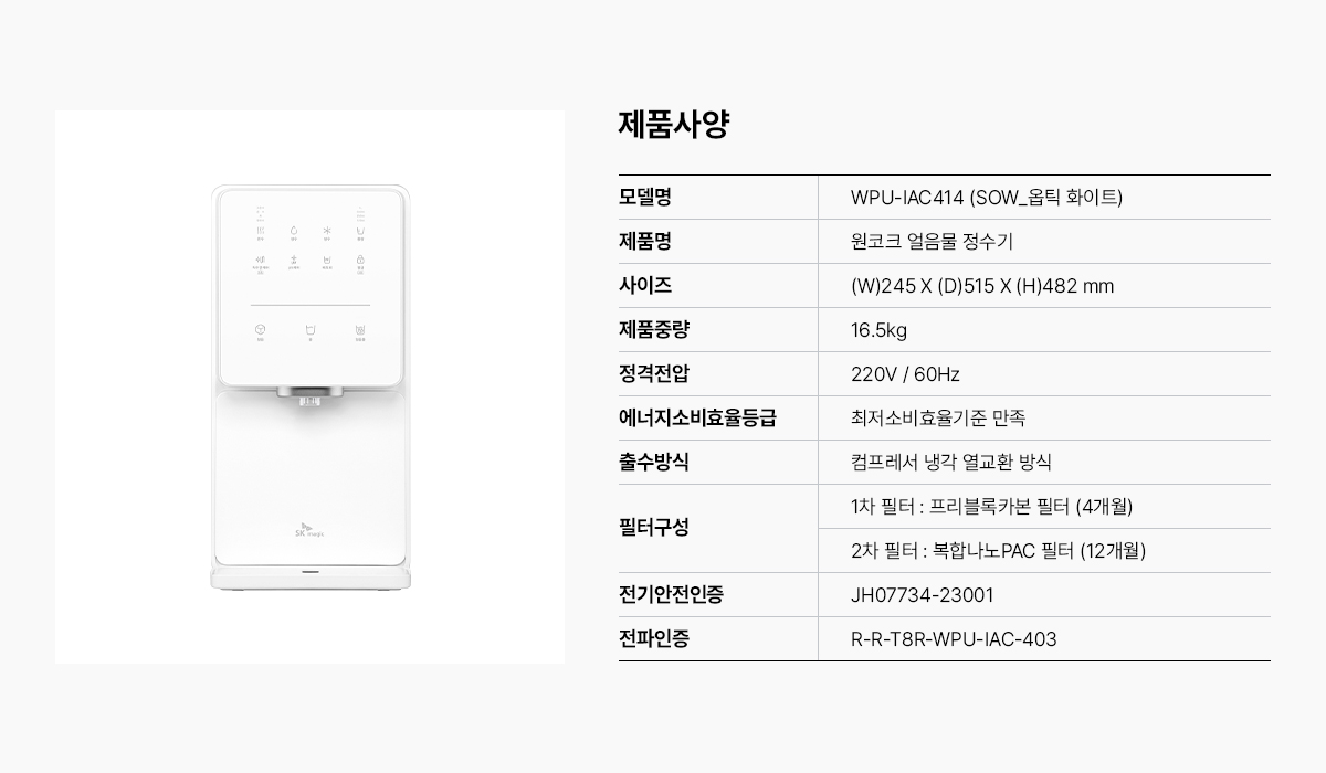 SK매직 원코크 얼음물 정수기 WPU-IAC414